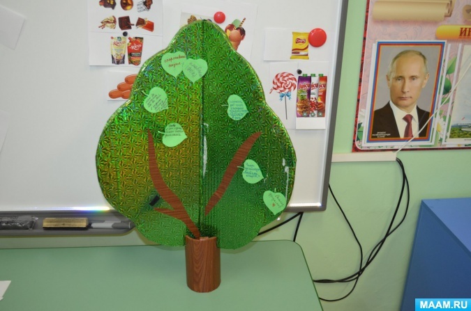 Ведущий: А сейчас мы проведем с вами акцию «Дерево жизни». У нас есть дерево, но посмотрите на нем нет листьев. На ваших столах лежат листочки, напишите на них, пожалуйста, свои рекомендации и пожелания по укреплению здоровья детей в детском саду. Мы обязательно рассмотрим все ваши предложения. (Пишутся пожелания, приклеиваются на дерево)