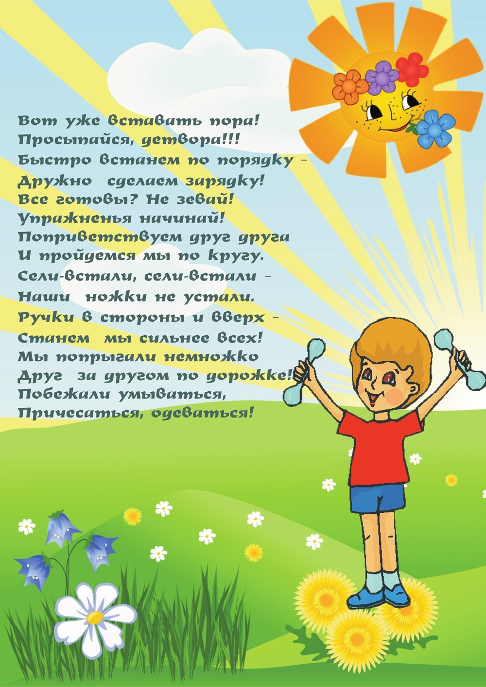 Утренняя гимнастика позволяет организованно начать день как в детском саду так и дома, а также способствует четкому выполнению режиму дня.